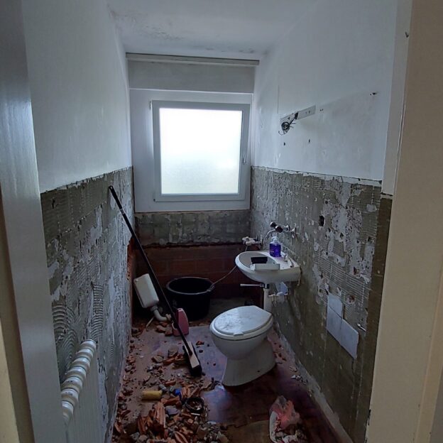 - Fourniture et pose de carrelage dans le wc, mur et sol