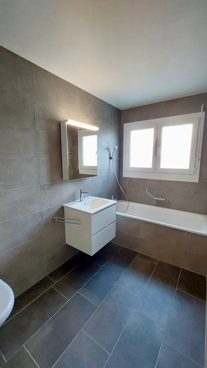 Découvrez la métamorphose de cette salle de bain à Payerne. Une rénovation complète alliant design contemporain et optimisation de l'espace pour un confort maximal.