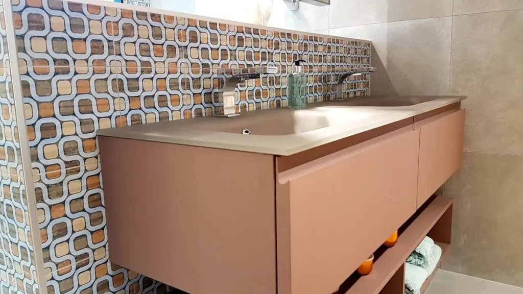 Nous commençons par la dépose de l'ancienne installation et l'évacuation des gravats. Ensuite, nous modifions les arrivées d'eau et mettons l'électricité aux normes pour vos spots et prises. Une attention particulière est portée à l'étanchéité sous le carrelage, une étape invisible mais cruciale pour la durabilité de votre salle d'eau.